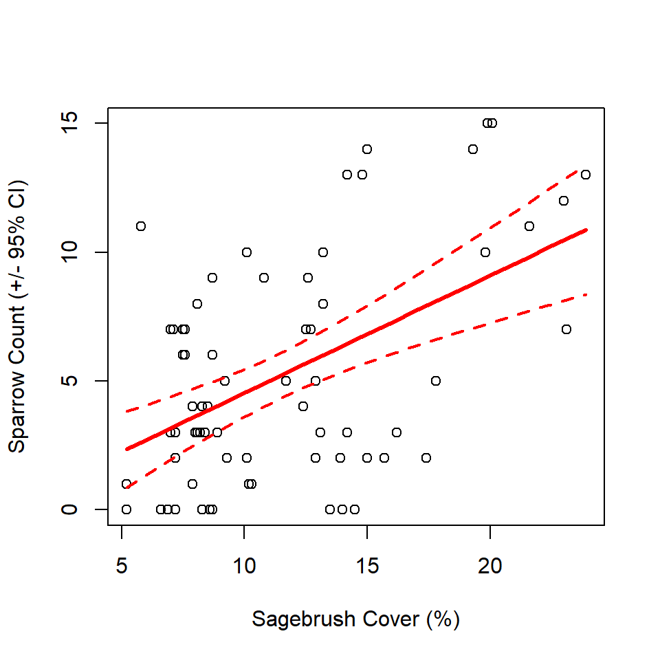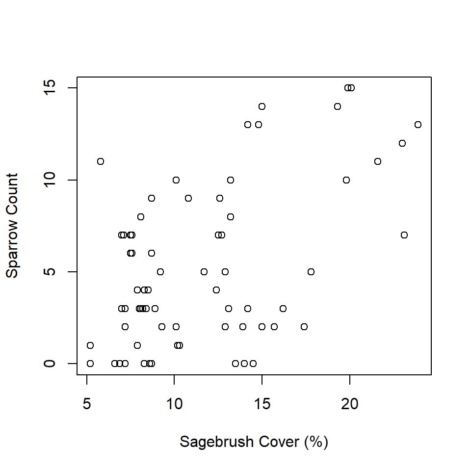 Second, the ‘wrong’ approach estimates a simple linear regression model to describe the relationship between sagebrush cover and number of sparrows.