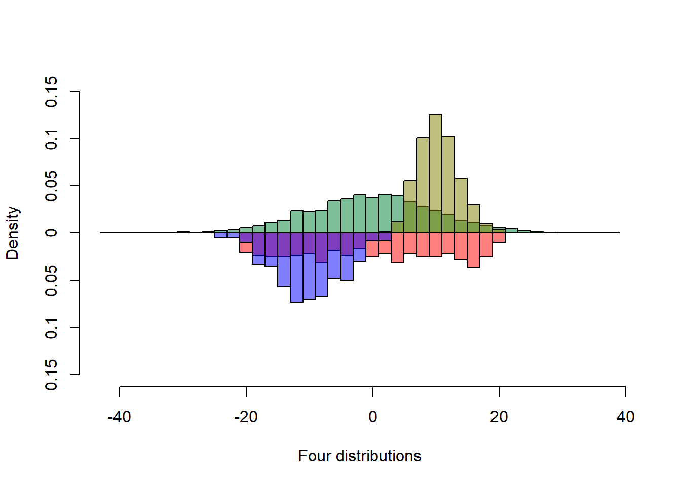 , xlab = "Four distributions"